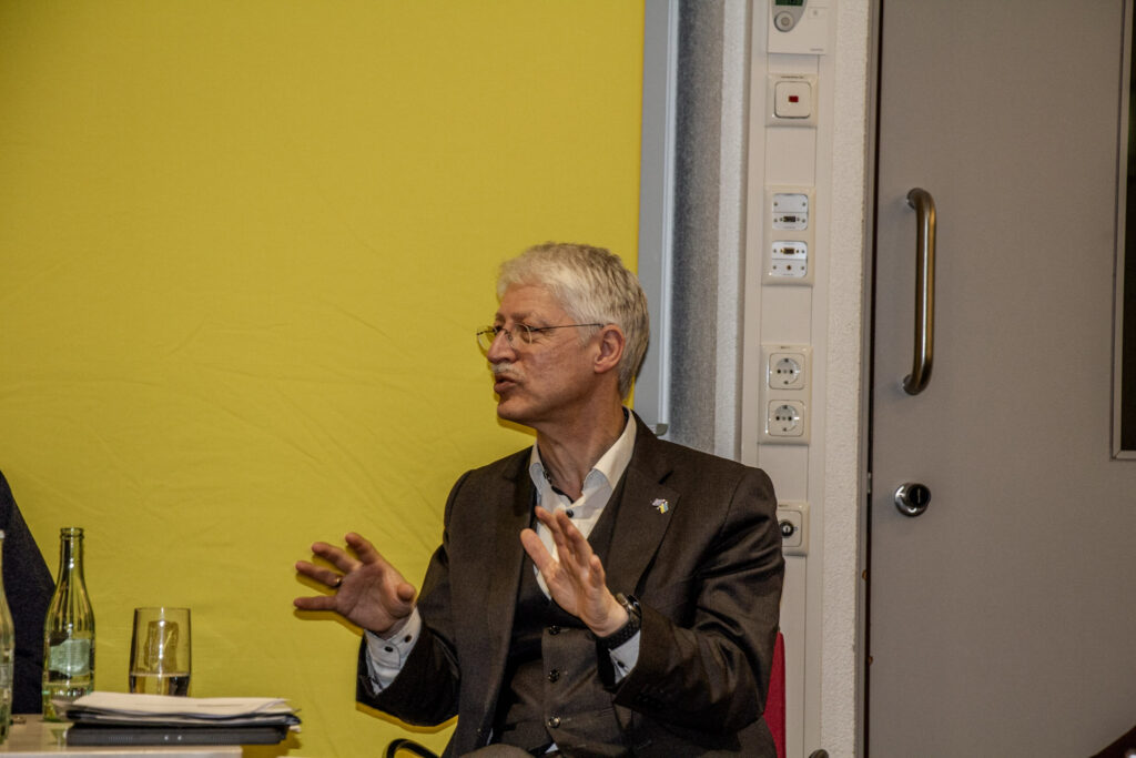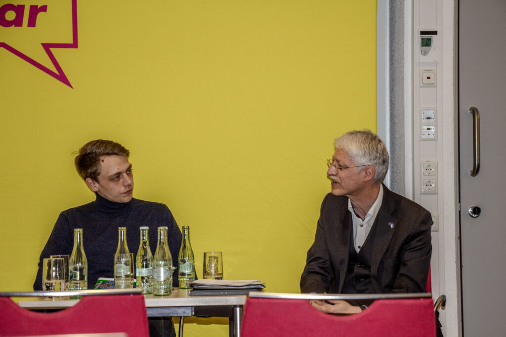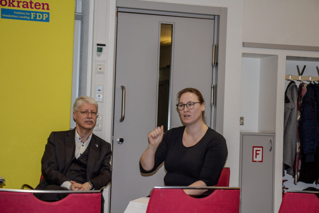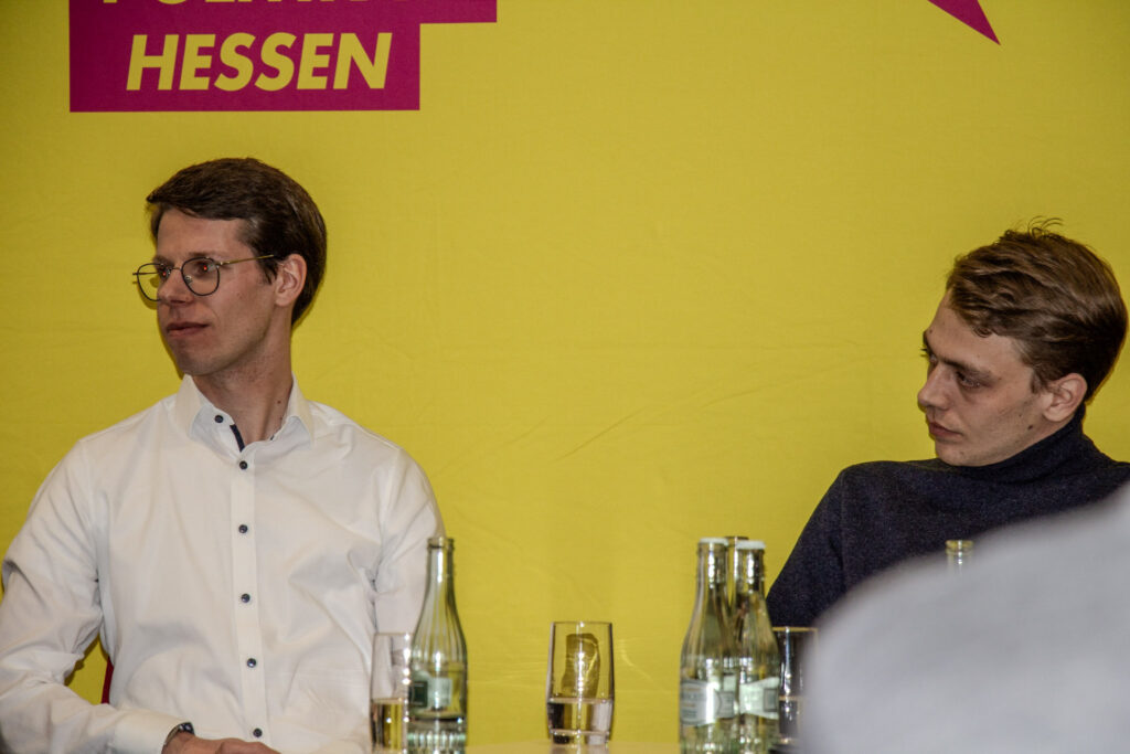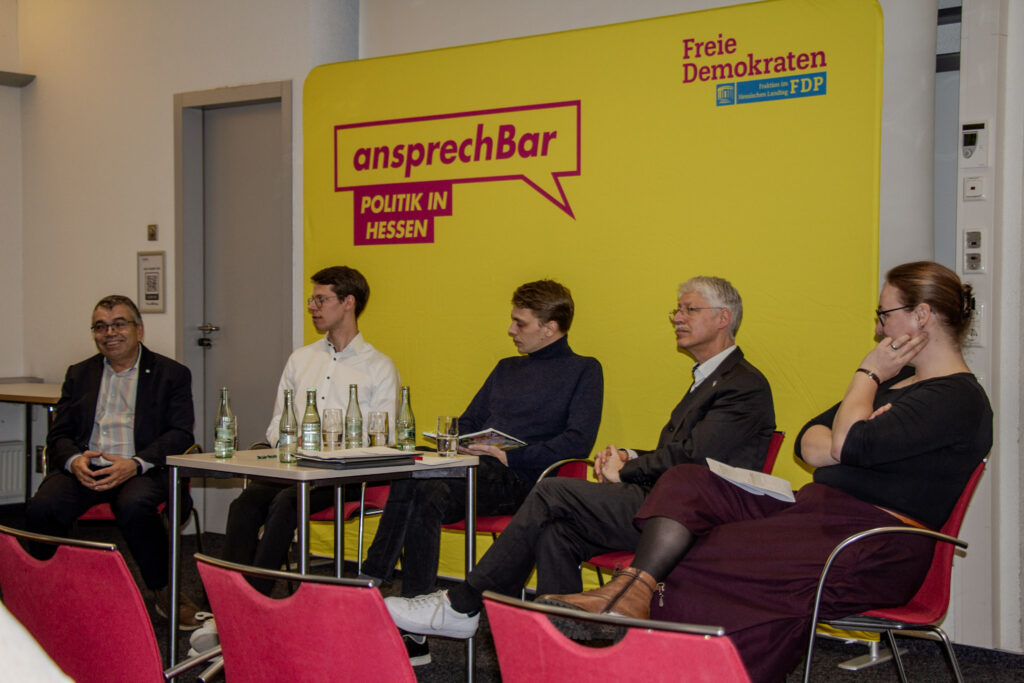 Der Bundesvorsitzende der Liberalen Hochschulgruppen a.D., Jan-Lukas Gescher, stellte dann die Gäste des Panels vor: Prof. Dr. Matthias Willems, Präsident der THM, Fabian Witzel, Landesvorsitzender der Liberalen Hochschulgruppen (LHG) Hessen sowie Annalina Benner, ehemalige wissenschaftliche Mitarbeiterin an der JLU Gießen. In einer lebhaften Diskussion wurden zunächst die unmittelbaren Folgen des Finanzierungsdefizits von rund 1 Milliarde Euro bis 2031 deutlich. „Dass ich nicht mehr als wissenschaftliche Mitarbeiterin an der Uni Gießen arbeite, liegt an den Folgen des Hochschulpakts, denn mein Vertrag wurde schlicht nicht verlängert“, berichtete etwa Benner. Dabei habe sie sich immer sehr für die Studierenden ins Zeug gelegt und stets volle Seminare gehabt, wohingegen manch andere Lehrperson wenig Engagement gezeigt habe. Auch Prof. Willems sah große Schwierigkeiten in der Personalplanung auf die hessischen Universitäten zukommen. „Mit weniger Lehrpersonal wird es Probleme mit Blick auf die Qualität der Lehrveranstaltungen geben. Zugleich gibt es in der universitären Verwaltung viele Ineffizienzen und Doppelstrukturen. Doch gehen muss am Ende derjenige, dessen Arbeitsvertrag als erstes ausläuft, nicht wer die besten Lehrveranstaltungen und Forschungsprojekte betreibt. Die Hochschulstruktur zielt hier nicht auf Leistung ab“, so Prof. Willems. Fabian Witzel ging indes auf die politischen Debatten an den Universitäten ein: „unsere politischen Mitbewerber, insbesondere von links, fordern nun unentwegt neue Schulden und allerlei Steuern für eine bessere Hochschulfinanzierung. Aber es ist doch absurd: Wir leben in Zeiten von Rekordsteuern und Schulden auf Bundes- und Landesebene und trotzdem kommt in der Bildung nichts an. Die Probleme liegen ganz woanders und sind struktureller Natur, da muss sich dringend einiges ändern.“ Es seien ein völlig überblähter Verwaltungsapparat, schlechte Digitalisierung und ein fehlendes Leistungsprinzip in der Lehre, die die Hochschulen teuer und ineffizient machten, so Witzel. Annalina Benner wies zudem darauf hin, dass auch der mittelhessische Mittelstand unter fehlender Qualifizierung der Arbeitskräfte und überbordender Bürokratie leide.
