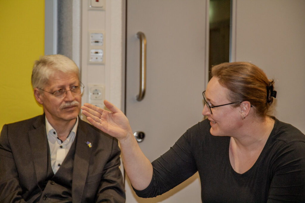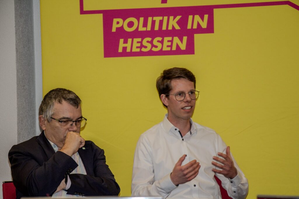 Mit Blick auf Lösungen wurde dann deutlich, dass Forschung und Bildung zurück nach oben in der Prioritätenliste der Landesregierung müssen. „Am Ende ist es fehlender politischer Wille, in Hessens Bildung zu investieren“, konstatierte Dr. Matthias Büger. Prof. Willems betonte, dass man mehr miteinander kooperieren und manchmal auch zurückstecken müsse. „Wenn jeder alle Studiengänge anbietet und meint, er könne das alles am besten, fehlen Synergieeffekte, die wir dringend benötigen,“ so Willems. Fabian Witzel empfahl nachgelagerte Studiengebühren, die sozialverträglich seien und die Hochschulfinanzierung von der jeweiligen Haushaltslage entkoppeln. „Wer exzellente Bildung zunächst kostenfrei genießt und dann einen gut bezahlten Job bekommt, sollte etwas zur Finanzausstattung der Unis beitragen. Mit einer sehr guten Hochschulfinanzierung können und müssen wir den Forschungsstandort Hessen zurück an die internationale Spitze bringen. Dafür stehen wir als LHG ein“, erklärte Witzel. Im Anschluss an die Diskussion standen die Teilnehmenden für Fragen aus dem Publikum zur Verfügung. Auch Dr. Büger nutzte die Möglichkeit zum Gespräch, um Anregungen der Bürgerinnen und Bürger mit in die FDP-Landtagsfraktion nach Wiesbaden zu nehmen.